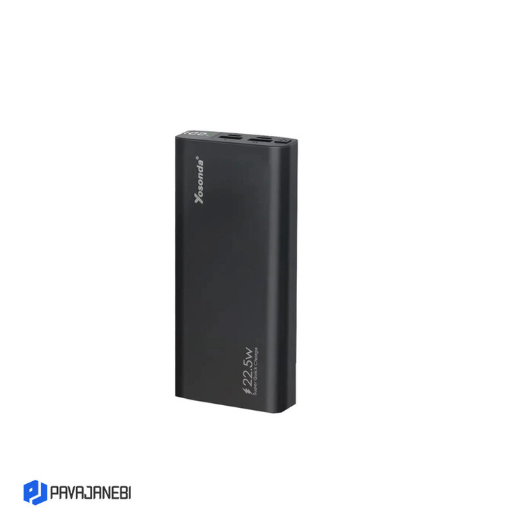 پاور بانک یوسوندا (yosonda) مدل YXD-A51 از سری شارژرهای همراه جدید و زیبا میباشد. جنس بدنه این شارژر فلزی بوده. دارای یک صفحه LED قابل نمایش جهت درصد شارژ باقی مانده پاوربانک میباشد. روی بدنه ی این محصول دو درگاه خروجی USB تعبیه شده که هر دو پورت آن دارای جریان خروجی با شدت 3، 2 و 1.5 آمپر و ولتاژهای 5، 9، 12 ولت نیز فراهم می آورد. همچنین دارای یک درگاه خروجی Type-C میباشد که جریانهای 1.5، 2.5 ،3, 5 آمپر و ولتاژهای 5، 4.5, 9، 12 ولت را فراهم می آورد. در بسته بندی این محصول یک کابل میکرو به طول 25 سانتی متر میباشد. در زمان استفاده از انواع پاوربانکها باید به شدت جریان خروجی آن و دستگاه مورد نظرتان که قرار است باتری آن را شارژ کنید، توجه داشته باشید. در این محصول از یک باتری با ظرفیت 20000 میلیآمپر ساعت بهره گرفتهشده . شرکت تولیدکننده برای روشن یا خاموش کردن این مدل از سری پاوربانکها یک کلید طراحی کردهاست که شما با فشردن آن میتوانید عملیات شارژ باتری دستگاههای خود را آغاز یا تمام کنید. از ویژگی های دیگر این پاوربانک میتوان به حفاظت در برابر تخلیه کامل شارژ، اتصال کوتاه، شارژ بیش از حد پاور اشاره نمود.