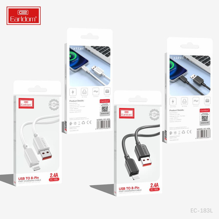 کابل شارژ سریع USB به لایتنینگ یک متری ارلدام Earldom EC-183 Lightning cable ‏(اصلی) گارانتی یک ساله