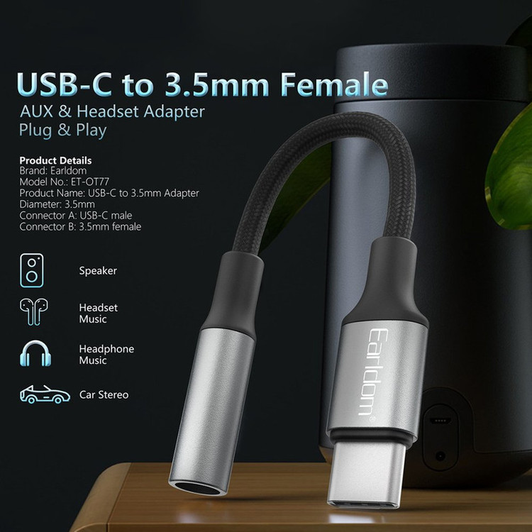 مبدل USB-C به جک 3.5 میلی متری ارلدام اصلی مدل OT-77