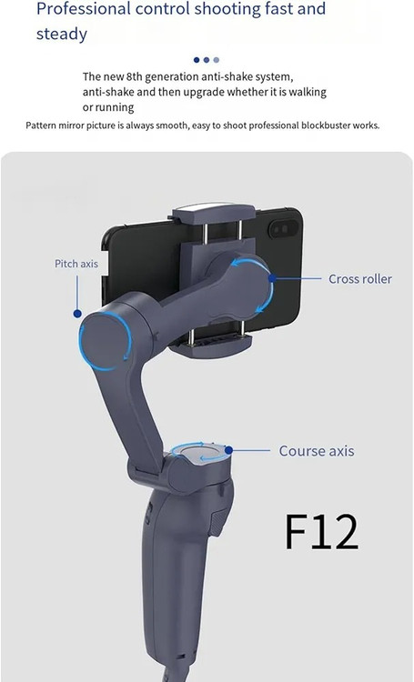 گیمبال موبایل و دوربین اکشن مدل f12 3-axis foldable gimbal