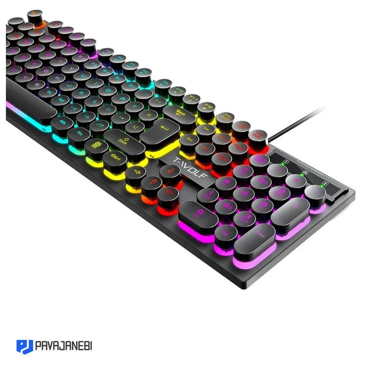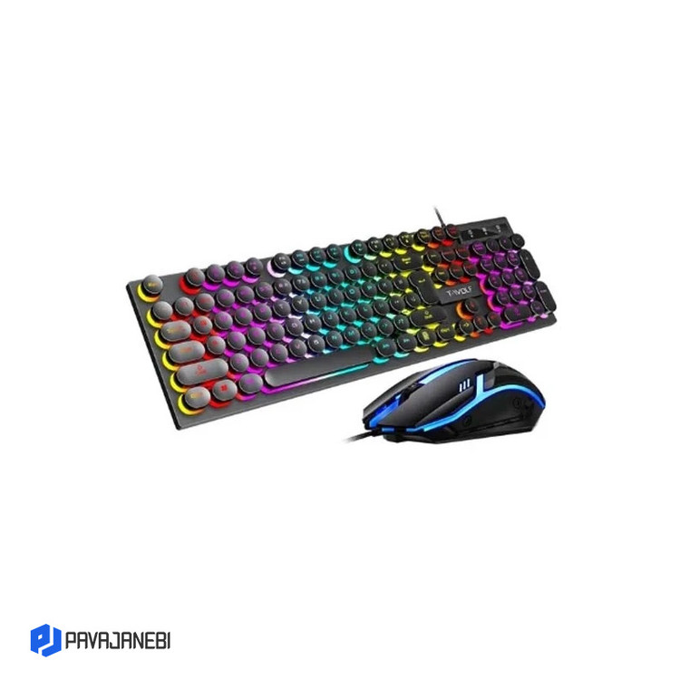 کیبورد و ماوس مخصوص بازی TWOLF مدل TF270 یک ست ماوس و کیبورد سیم دار عالی برای دوست داران گیم است که از کیفیت بسیار خوبی برخوردار است. کیبورد این محصول دارا نورپردازی چند رنگ به صورت ثابت در کناره های کلید ها و ماوس دارای نورپرازی چند رنگ و قابل تغییر به صورت اتوماتیک است که زیبایی بسیار خاصی به محصول می دهد و توجه هر کاربری را به خود جلب میکند. این کیبورد دارای دکمه های مالتی مدیا می باشد که کار کردن با این کیبورد را لذت بخش تر میکند.این کیبورد و موس بوسیله کابل USB به سیستم شما متصل میشود.