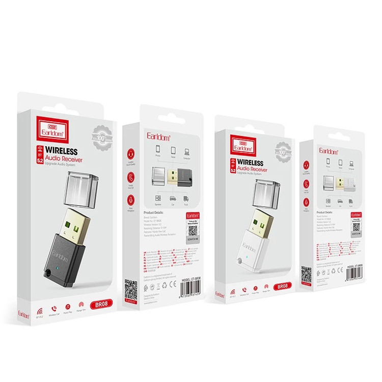 دانگل انتقال صدا ارلدام دارای نسخه بلوتوث 5.2 می باشد که جهت اتصال گوشی موبایل ، تبلت ،لپ تاپ به اسپیکر، پخش صدا اتومبیل ، و دستگاه های سازگار با USB استفاده می شود.دانگل بلوتوث یو اس بی BR08 بدون افت کیفیت و نویز صدا را انتقال می دهد. که شعاع برد آن تا ده متر می باشد. دانگل بلوتوث اصلی و اورجینال الردام مدل Earldom BR08 علاوه بر طراحی و ظاهری زیبا جز پرطرفدارترین محصول شرکت الردام جهت انتقال صدا و موسیقی به دستگاه های فاقد بلوتوث میباشد.