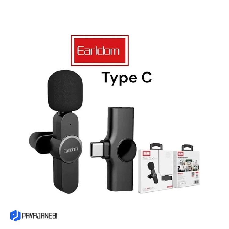 میکروفون بی سیم Earldom Type-C مدل MC7C دارای توری ضد باد، نشانگر میکروفن، پورت شارژ میکروفن، گیره میکروفن، کلید سوئیچ، پورت برای اتصال تلفن، نشانگر گیرنده، پورت گیرنده، سوراخ طناب می باشد.