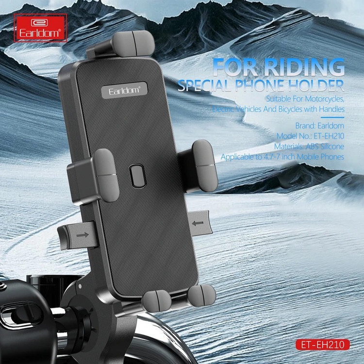 وتور و دوچرخه از جمله وسایل نقلیه ای است که برای گردش در طبیعت و مسیرهایی که امکان تردد با خودرو در آنها نیست، مورد استفاده قرار میگیرد. در بسیاری از مواقع، ما نیاز داریم که از مسیر یاب (جی پی اس) در هنگام دوچرخه سواری استفاده نماییم و یا دوست داریم از مسیر حرکت خود فیلمبرداری کنیم و حتی هنگام رکاب زدن، موسیقی دلخواه خود را گوش دهیم. پایه نگهدارنده گوشی مخصوص دوچرخه و موتور سیکلت ارلدام EH210 به ما این امکان را میدهد تا همه این موارد را تجربه کنیم و گوشی خود را در طول ماجراجویی های خود ایمن نگه داریم. پایه نگهدارنده گوشی همراه دوچرخه و موتور سیکلت EH210 یک محصول خارق العاده است که می تواند جان راکبین این وسایل نقلیه را از حوادث جاده ای ناشی از بی توجهی بابت استفاده از گوشی تا میزان قابل توجه ای کاهش دهد. این هولدر از مواد بسیار مقاوم و از جنس ABS ساخته شده است. در قسمت پایین شاهد یک گیره با ثبات که از روش قدیمی ولی قابل اطمینان پیچ و مهره با پوشش سیلیکونی قابل جدا شدن استفاده می کند که برای ایجاد مکانیزم فیکس پایه روی فرمان وسیله نقلیه استفاده شده است. در ادامه یک مفصل با قابلیت چرخش 360 درجه قرار گرفته که امکان استفاده از تلفن همراه در حالتهای افقی و عمودی را فراهم می نماید. در قسمت نگهدارنده پایه شاهد استفاده از ABS در سیلیکون هستیم که ساختاری مقاوم در برابر ضربه و حرارت را ایجاد کرده است. استفاده از یک اتصال 4 نقطه ای که قابلیت پشتیبانی از تلفن های سایز 4.7 تا 7 اینچ را دارا می باشد این اطمینان را به راننده می دهد که گجت خود را در هیچ دست اندازی از دست نخواهد داد.