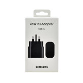 شارژر اصلی سامسونگ سوپر فست 45 وات مدل Travel Adapter Super Fast 45W Type-C (EP-TA845) شارژر 100 درصد اصلی و اورجینال سامسونگ میباشد. این محصول ساخت ویتنام میباشد. شارژر دیواری(EP-TA845) محصول شرکت سامسونگ است. این شارژر دیواری دارای فناوری PD 3.0 است که با استفاده از آن می توانید دستگاه خود را با سرعت بیشتر و با توان 45 وات شارژ کنید. شدت جریان خروجی این شارژر برابر با 5 آمپر است که می توان از آن برای شارژ کردن تبلت هم استفاده کنید. برای این شارژر از چیپ هوشمندی استفاده شده تا با اتصال دستگاه به صورت خودکار جریان مناسب را برای دستگاه تامین کند. درگاه خروجی این محصول هم از نوع USB-C است. البته همراه با این شارژر یک کابل تبدیل USB-C به USB-C به طول 1.8 متر هم ارائه میشود. این شارژر سایر محصولات و موبایل های سری 2019 به بالا و گوشی هایی که توانایی شارژ سوپرفست را دارند پشتیبانی می کند.