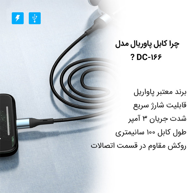 کابل تبدیل USB به لایتینگ پاواریال مدل DC-166 باطول یک متر، برای شارژ کردن و انتقال اطلاعات مناسب است. کابل پاواریال DC-166، با دستگاههایی که مجهز به درگاه لایتینگ هستند، سازگار بوده و دارای فناوری شارژ سریع است که آن را به کابلی متمایز تبدیل کرده است. جریان خروجی کابل DC-166، پنج آمپر است و با پوششی از کنف روکش شده که دوام این کابل را بیشتر کرده است و مدت طولانیتری کار میکند. پس اگر به دنبال کابلی هستید که مقاوم باشد و قابلیت شارژ سریع داشته باشد، ما به شما پاواریال مدل DC-166 را پیشنهاد میکنیم.