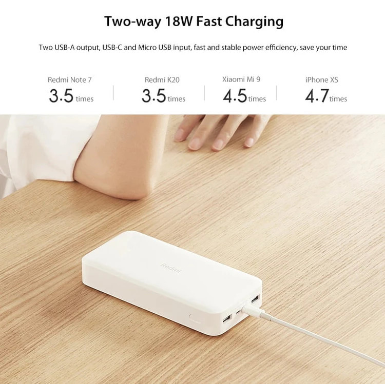 پاوربانک های شیائومی یکی از محبوبترین پاوربانک های بازار ایران می باشد که بخاطر عملکرد بسیار خوبی که در این سالها از خود نشان داده اند جایگاه ویژه ای میان مردم دارد. پاوربانک شیائومی ردمی Xiaomi Redmi PB200LZM یکی از جدیدترین محصولات این شرکت است که قیمتی مناسب را در کنار امکانات بالا قرار داده است. Xiaomi Redmi PB200LZM دارای دو پورت USB خروجی می باشد که هرکدام توانی معادل 2.4 آمپر دارند و می توانند گوشی شما را با سرعت 2.4 آمپر شارژ کند. این پورت ها در حالت استفاده بصورت تکی این خروجی را دارند و در حالت استفاده همزمان جمعا 2.6 آمپر خروجی دارند. این پاوربانک توانایی شارژ گوشی شما با سرعت بالا را داشته توان خروجی معادل 18 وات را داراست. بنابراین تمام گوشی هایی که از این فناوری شارژ با توانی تا 18 وات پشتیبانی می کنند، با اتصال به این پاوربانک فست شارژ می شوند. پاوربانک شیائومی Redmi 20000 جمعا دارای 4 پورت است که دوتای آن USB بوده که در ابتدا توضیحات آن داده شد. دو پورت دیگر اما یکی Micro USB و دیگری تایپ سی است که هر دو برای شارژ خود پاوربانک می باشد. شما می توانید با استفاده از پورت تایپ سی پاوربانک خود را با توان 2.4 آمپر شارژ کنید. باتری پاوربانک Xiaomi Redmi PB200LZM از نوع لیتیوم پلیمری می باشد و دارای 9 سطح امنیتی جلوگیری از اتصال کوتاه، جلوگیری از ورود ولتاژ بیش از حد، شارژ بیش از حد گوشی و... بهره می برد. این پاوربانک نسخه ارتقا یافته از مدل پیشین خود است که بجای خروجی 2.1 آمپر دارای خروجی 2.4 آمپر می باشد. همچنین این پاوربانک پک گلوبال بوده و علاوه بر یک عدد پاوربانک 20000 ردمی PB200LZM یک کابل کوتاه از نوع microUSB و دفترچه راهنما در پک آن قرار دارد.
